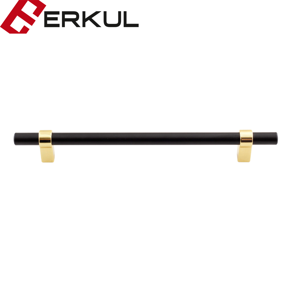 Erkul 718 Seden Kulp Modeli, modern tasarım anlayışını lüks detaylarla buluşturan özel bir mobilya kulpudur. Siyah mat silindirik gövdesi ile parlak altın renkli bağlantı ayaklarının oluşturduğu kontrast, ürüne güçlü ve sofistike bir karakter kazandırır. Minimal çizgileri sayesinde sade tasarımlara zarafet katarken, altın detayları ile mekâna prestijli bir dokunuş ekler.